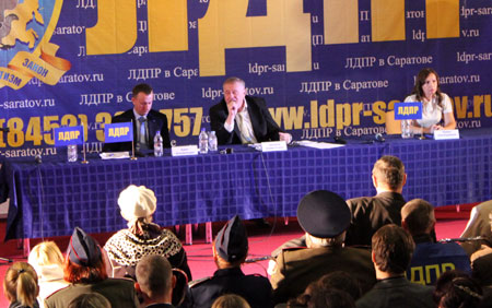 Сегодня лидер ЛДПР Владимир Жириновский начал встечу с избирателями в кинотеатре «Саратов» со слов: «Ммм, хороший зал! 600 мест!» И сообщил, что приезжает в Саратов в 13-ый раз.