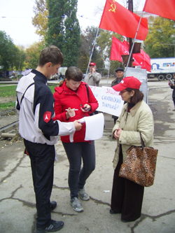 Сегодня коммунисты Заводского района провели пикетирование на кольце 9-го трамвая против идеи городских властей сократить трамвайные маршруты №№3, 9, 10 до Детского парка. Пикетирующие держали плакаты с лозунгами: «НЕТ! ЛИКВИДАЦИИ ТРАМВАЙНЫХ МАРШРУТОВ ДО КРЫТОГО РЫНКА!», «ЗАЩИТИМ САРАТОВСКИЙ ТРАМВАЙ!», «УНИЧТОЖЕНИЕ ТРАМВАЯ – ЭТО ЭКОНОМИЧЕСКАЯ ДИВЕРСИЯ!»