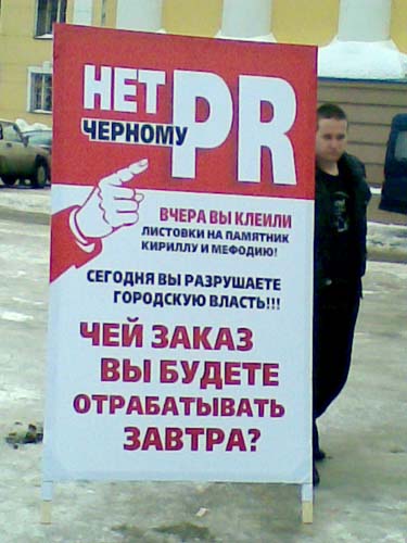 Остается только посочувствовать заказчикам акции студентов, которые даже не удосужились подготовить их к элементарным вопросам. Да и явно притянутый за уши слоган про «черный пиар» (такова позиция властей – любое выражение протеста их деятельности для них является черным пиаром) остался без вразумительного обоснования. Примечательно, что главарь юных «дарований» Алексей учится в Саратовском государственном медицинском университете.