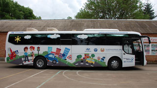 Как сообщает автоинспекция, «грандиозное мероприятие» автобус оснащен учебным классом на 23 посадочных места. Автобус-тренажер является инженерным сооружением, позволяющим продемонстрировать использование ремней безопасности при резком торможении или столкновении.