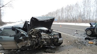 Шофер легковушки не справился с управлением, выехал на по полосу встречного движения и врезался в фуру