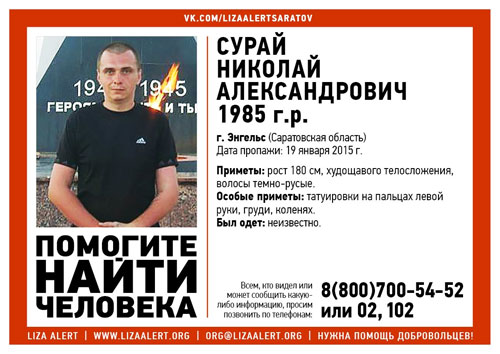 В Саратовской области ведется розыск 29-летнего жителя Энгельса. Как сообщает поисковый отряд «Лиза Аллерт», Николай Сурай пропал еще 19 января.