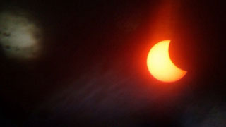В настоящее время жители Европейской части России, в том числе Саратова, могут наблюдать редкое природное явление – солнечное затмение. Жители города начали выкладывать в социальных сетях фотографии того, как Луна частично закрывает Солнце. Для этого люди применяли сподручные затемненные предметы, в частности пленки от дискеты, фотопленки, маску сварщика и др.
