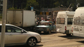 25-летний водитель «Жигулей» не соблюдал дистанцию и на светофоре столкнулся с ехавшими в попутном направлении «Газелью» и микроавтобусом маршрута № 41