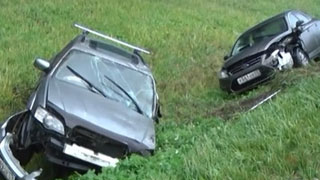 На трассе две машины вылетели в кювет после массового ДТП