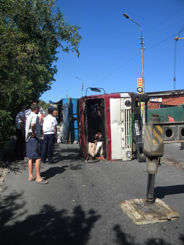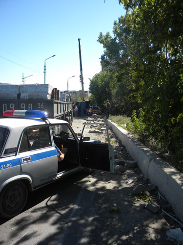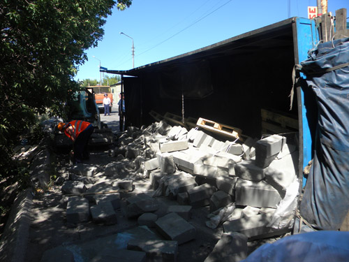 Сегодня утром в Саратове на улице Новоузенской на спуске с Кумысной поляны перевернулся «КамАЗ», груженный бордюрным камнем. Как рассказал корреспонденту «Четвертой власти» начальник городского ГАИ Дмитрий Колчин, приехавший на место ДТП, два «КамАЗа» следовал из города Борисоглебск Воронежской области в Саратов по трассе Волгоград-Воронеж. Подъезжая к городу, водители фур свернули на грунтовую дорогу и спросили у местного жителя, как им объехать экипажи ГАИ, которые должны быть на трассе. В результате, объезжая госавтоинспекторов, фуры долго двигались по грунтовке и наконец выехали в город в районе детских лагерей «Дубки» и «Березка». Затем «КамАЗы» начали спускаться по улице Новоузенской. На очередном повороте плохо закрепленный бордюрный камень в одном из "КамАЗов" сместился вбок, и грузовик перевернулся. Бордюрный камень рассыпался по дороге. По счастливой случайности никто не пострадал, так как авария произошла в промышленной зоне. Хотя уже буквально в 50 метрах от места ДТП стоит жилой дом. Водителя фуры госпитализировали в шоковом состоянии.