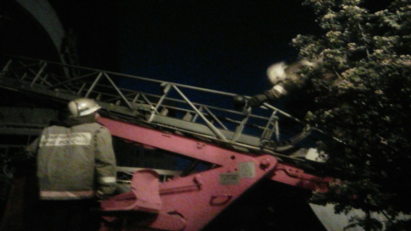 Огнеборцы по приставной лестнице эвакуировали с третьего этажа здания посетителей заведения и персонал.