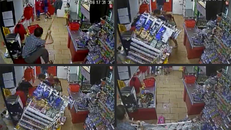Через пару мгновений данный гражданин вернулся в магазин, стал требовать вернуть обувь. Что происходило дальше, осталось за кадром, но потом при попытке побега свалилась стойка с товаром. При этом некий мужчина пытался обезвредить злоумышленника ударами лопатой. Но тому все-таки удалось убежать, хоть и ненадолго – его поймали полицейские.