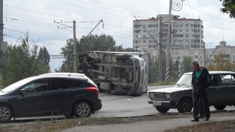 Сегодня в Заводском районе Саратова грузовой автомобиль «ГАЗель» перевернулся после столкновения с легковушкой. Об этом происшествии сообщили очевидцы в социальных сетях.