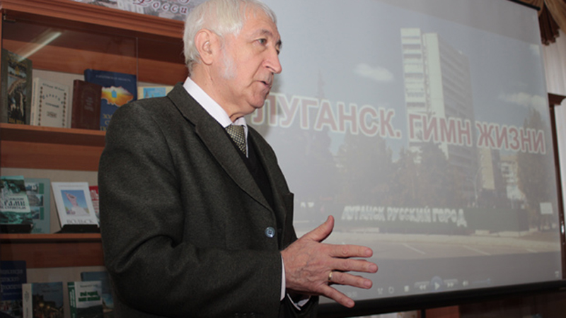 Стоит отметить, что во встрече принял участие писатель Александр Зуев. Он презентовал собравшимся свои новые книги, которые подписал в дар библиотеке, и показал свой новый фильм «Луганск. Гимн жизни». Это уже третий фильм Александра Пулатовича, посвященный Новороссии.