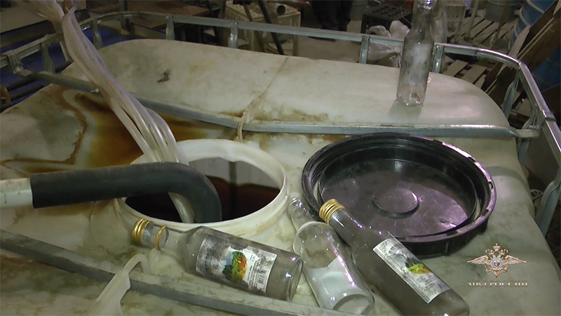 Официальный представитель МВД Ирина Волк рассказала, что производимый суррогат «предназначался для отправки в другие российские регионы». Перед спецоперацией был задержан грузовик, якобы перевозивший шпатлевку, но внутри нашли 66 тысяч бутылок коньяка известной марки. Причем акцизные марки имели признаки подделки.