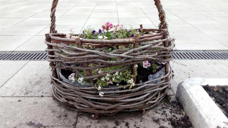 Декоративные объекты в виде плетеных корзин появились там накануне 12 апреля.