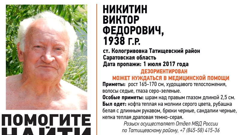 Всем, кому что-либо известно о местонахождении Виктора Никитина, просят обращаться по телефонам: 8(84558) 415 36, 8 (800) 700 54 52, 02, 102.