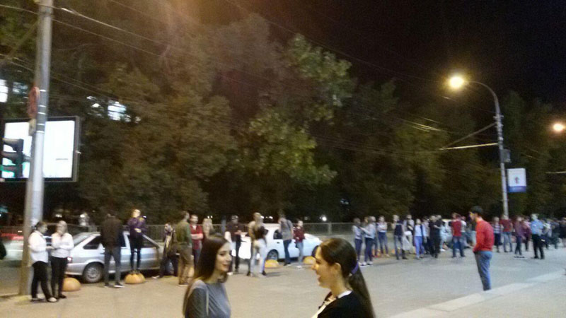 На месте замечены сотрудники полиции и МЧС. Они не стали объяснять людям, что случилось, рассказывает очевидец. однако по некоторым данным, речь идет об анонимном звонке о минировании.