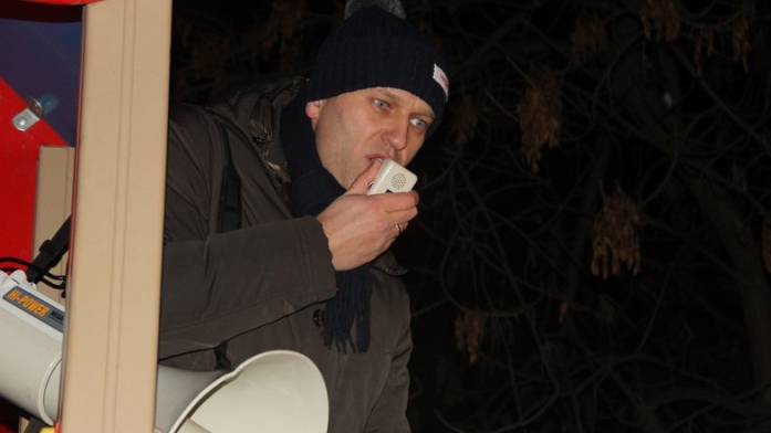 Когда на место прибыл Алексей Навальный, он сначала предложил подняться на уже установленную «братством» сцену. Однако по пути его встретил руководитель организации Сергей Авезниязов и объяснил, что ему туда нельзя. Тогда оппозиционер пошел со сторонниками в другую часть сквера. В настоящее время он «вещает» через мегафон с детской площадки, забравшись на горку. Число участников акции постепенно возрастает.