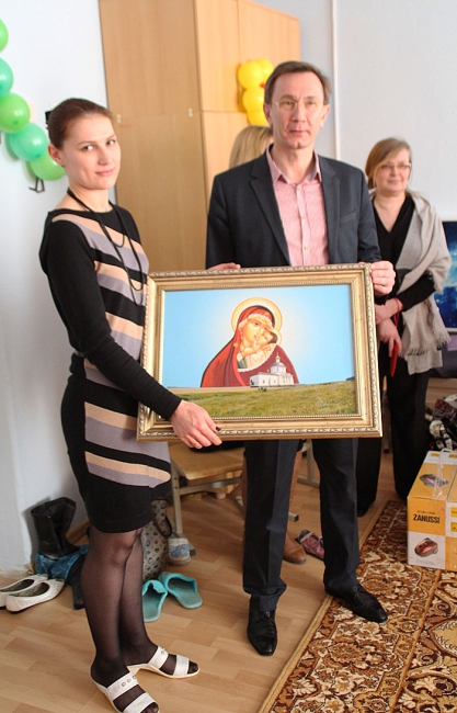 Зайдя в отремонтированное помещение, где народного избранника уже ждали маленькие воспитанники школы, депутат продемонстрировал основной подарок - икону, которую специально для интерната передал настоятель храма святых Петра и Павла Сергиева Посада батюшка архимандрит Герман.