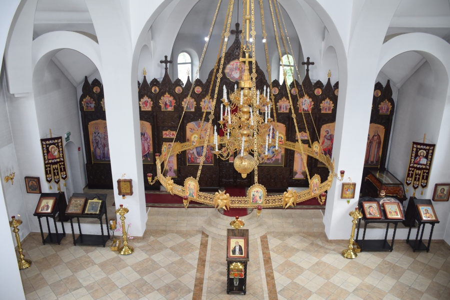 О. Игорь Емельяненко рассказал историю храма. Он был построен по программе строительства 20 православных храмов в Саратовской области и освящен в сентябре 2018 года. То есть, церковь совсем молодая, ей всего 6 лет. А сам о. Игорь был назначен настоятелем владыкой Игнатием только чуть больше 5 месяцев назад, в январе этого года. Но, к сожалению, любому прихожанину сразу становятся видны просчеты в проектировании и отсутствие контроля при строительстве храма. Нет, сама архитектура и стиль очень интересны, таких храмов, скорее всего, больше нет, так как стиль эклектичен, включает в себя элементы старорусского, классического стилей и модерна. Но вот исполнение, строительство и проектирование оставляют желать лучшего. В храме отсутствуют вентиляционные системы, иногда во время богослужения бывает так душно, что некоторым прихожанкам становится плохо. Сейчас пробито вентиляционное отверстие, но оно проблемы в полном объеме не решает. Второй большой проблемой являются недоделки с гидроизоляцией крыши храма и колокольни. В местах сопряжения крыши с корпусами гидроизоляция давно рассохлась и сейчас практически отсутствует. Это приводит к появлению - особенно в углах храма и колокольни - многочисленных подтеков и отслоению краски и штукатурки. В некоторых углах даже поселилась черная плесень, которую хорошо видно на белоснежных стенах.
