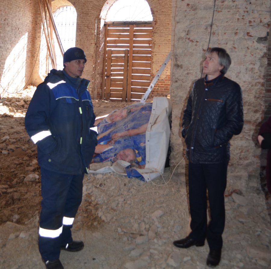 Сейчас полдень, на месте оказался только один рабочий, который представился Виталием Хрусталевым. Остальные трое уехали обедать. Виталий не просто наемный рабочий, но и душой болеет за возрождение храма. Он говорит, что бригада у них слаженная, работают много и дружно.