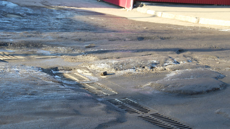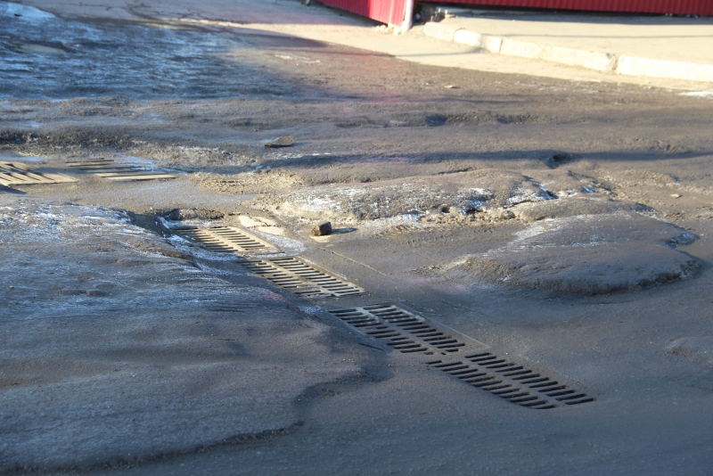 Из-за наледи дождеприемники на Вольской превратились в глубокие ямы