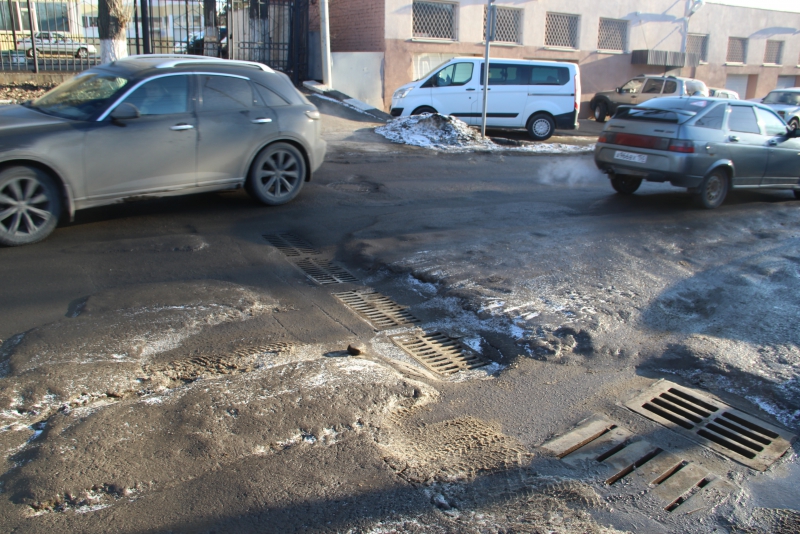Участки льда перед дождеприемниками становятся неприятным сюрпризом для водителей, спускающихся по Вольской в сторону улицы Соколовой, они часто не успевают оценить препятствия и вовремя оттормозиться перед ними.