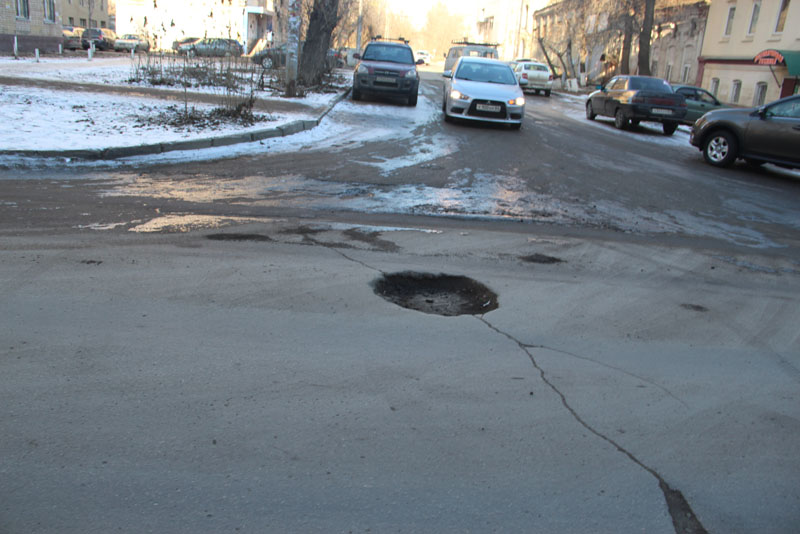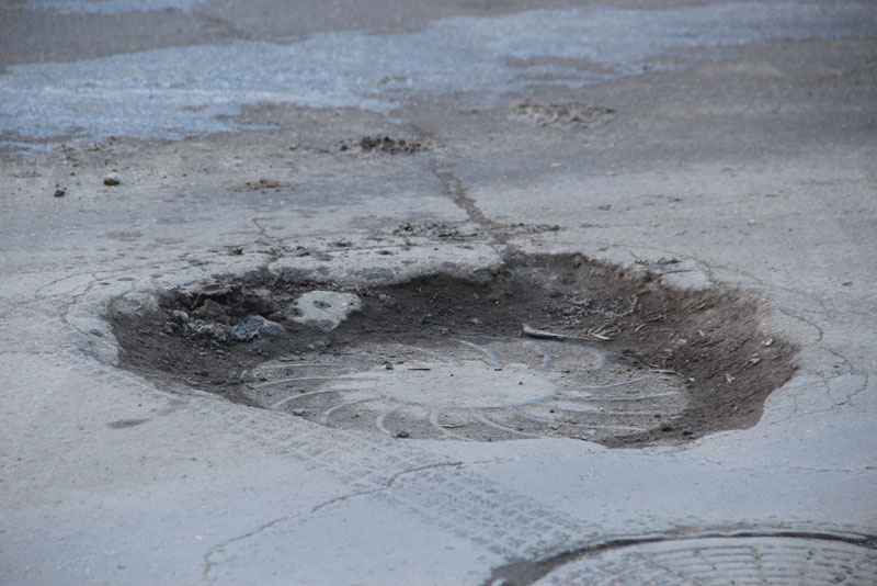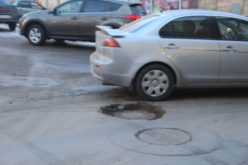 Два смотровых колодца, больше напоминающие кратеры, расположились ровно в центре пересечения улиц Зарубина и Железнодорожной, доставляя немало трудностей водителям, поворачивающим на этом перекрестке. Еще одна яма находится по соседству с домом №176 по улице Зарубина, возможно и в этом случае под толстым слоем грязи скрывается очередная крышка люка, значительно отклонившаяся от уровня дорожного покрытия.