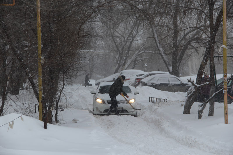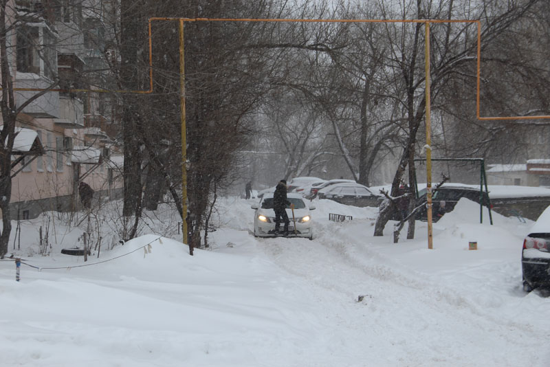 Дворы на Деловой. Водители откапывают машины и проезды, самостоятельно пытаясь выбраться из снежного плена