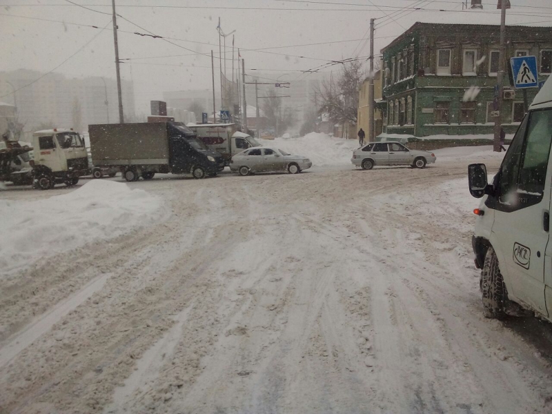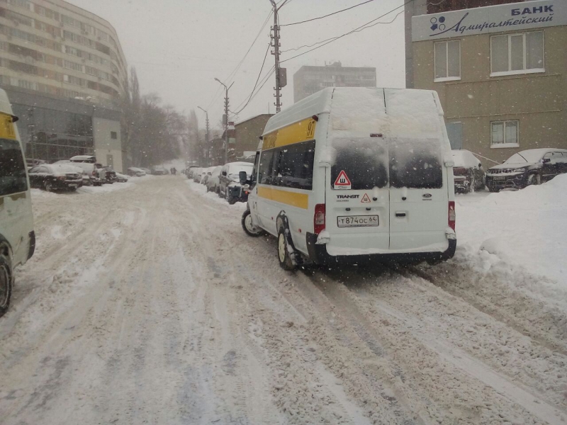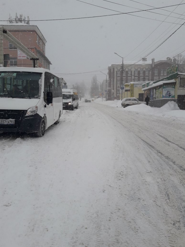 В Саратове общественный транспорт борется со снежными заносами на дорогах