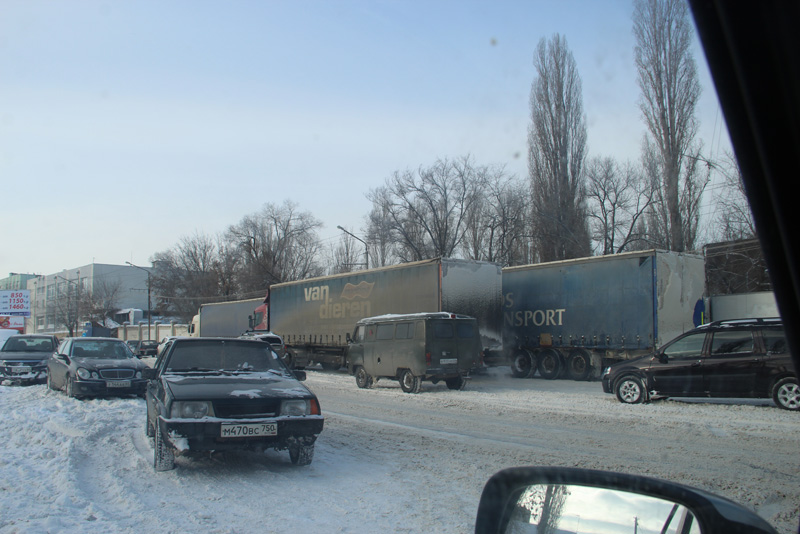 Несколько большегрузных автомобилей не могут преодолеть обледеневший участок улицы Технической в Ленинском районе Саратова.