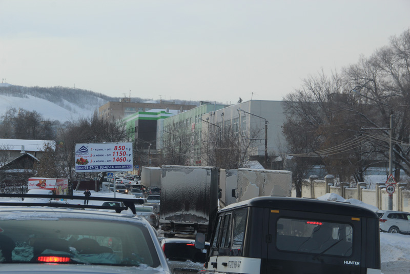 Движение автомобилей в сторону проспекта 50 лет Октября фактически остановилось. Водители легковых машин пытаются объехать препятствие по встречной полосе, либо разворачиваются в поисках альтернативных маршрутов объезда.