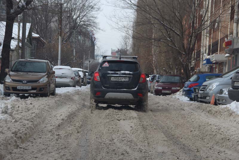 Дороги, которые могли бы разгрузить центральные магистрали и тем самым способствовать их скорейшей очистке, а в случае пробок стать альтернативой для транспортного потока, сейчас едва ли годятся на эту роль. На момент инспекции только один участок улицы Посадского от Университетской до Аткарской можно считать расчищенным.