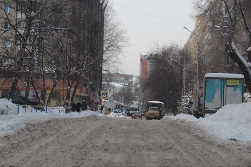 На нерасчищенные вчера улицы Зарубина, Посадского и Гоголя в редакцию «Дорожного контроля» пожаловался местный житель Павел. Сегодня, на второй день после окончания осадков, ситуация на этих улицах несколько изменилась, по дорогам прошла снегоуборочная техника, но до очистки покрытия еще очень далеко. И без того узкие улицы превратились в односторонние проезды, где встречный транспорт не может разъехаться и буксует в снежной каше.