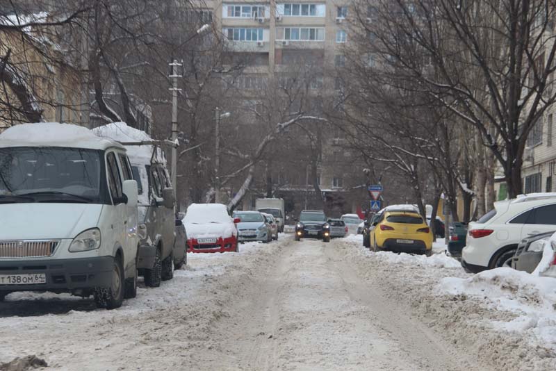 После бурного снегопада некоторые дороги в центре Саратова остаются плохопригодными для беспрепятственной езды по ним.