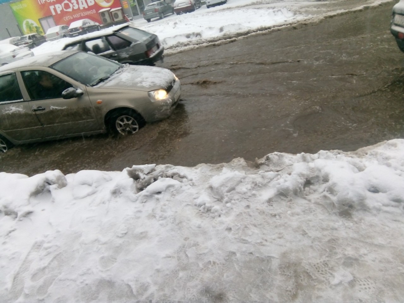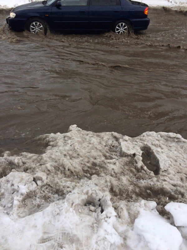 На прошлой неделе город страдал от мощного снегопада, а начало этой встретило горожан плюсовой температурой и снежной кашей на дорогах и тротуарах. Некоторые улицы оказались полностью затопленными.