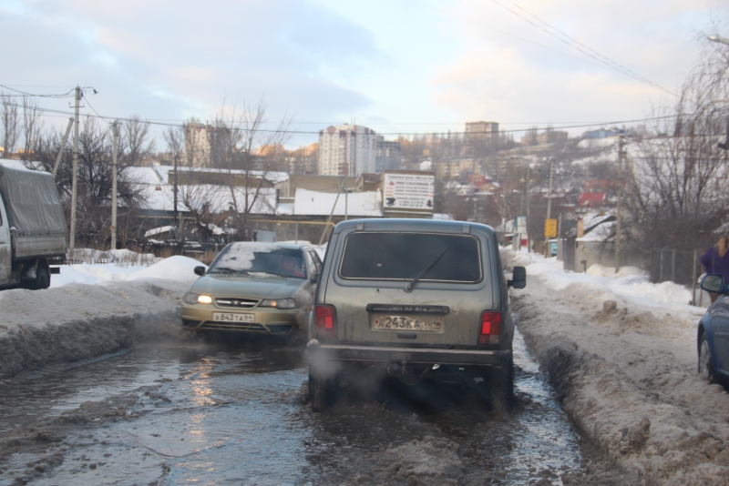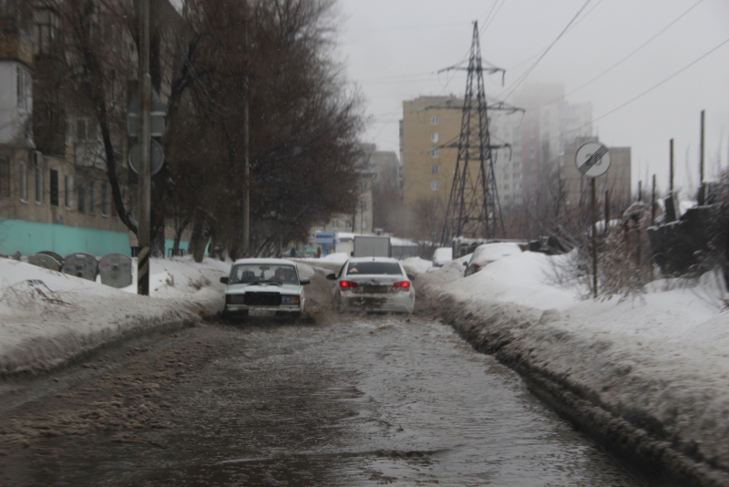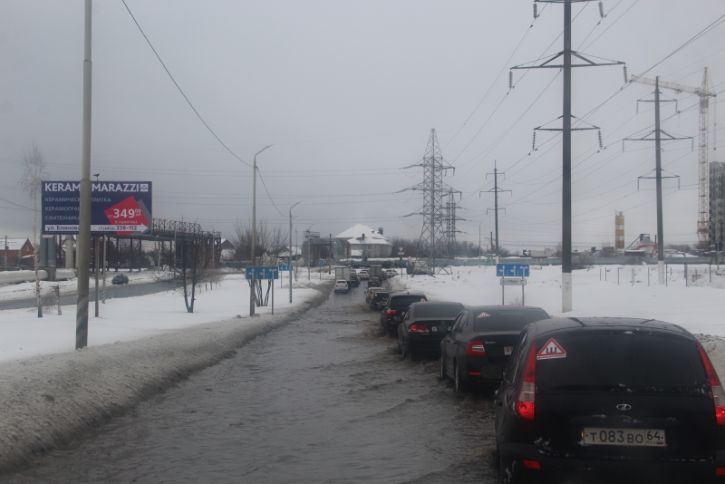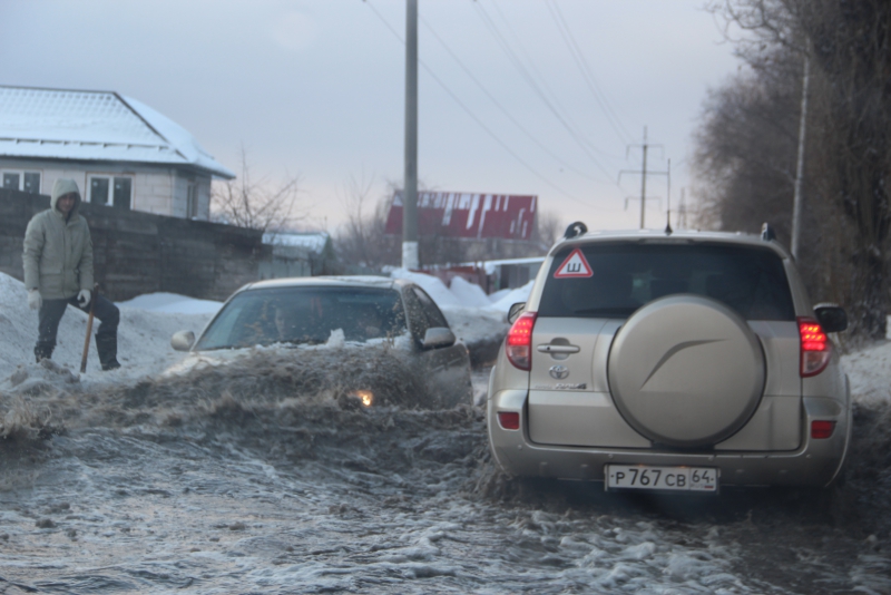 В Саратове из-за слякоти и снега на дорогах автомобили не могут проехать и глохнут в пути, а пешеходы вынуждены перепрыгивать через лужи. Об этом сообщает инспектор «Дорожного контроля», который сам стал заложником ситуации.