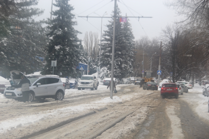 По данным инспектора «Дорожного контроля», второстепенные улицы не расчищены, а завтра, по словам метеорологов, прогнозируется сильный «минус». Во что превратится водяная каша, страшно представить. Центральные улицы расчищены, но ливневая канализация в большинстве мест остается забитой, и вода скапливается на дорогах и тротуарах.