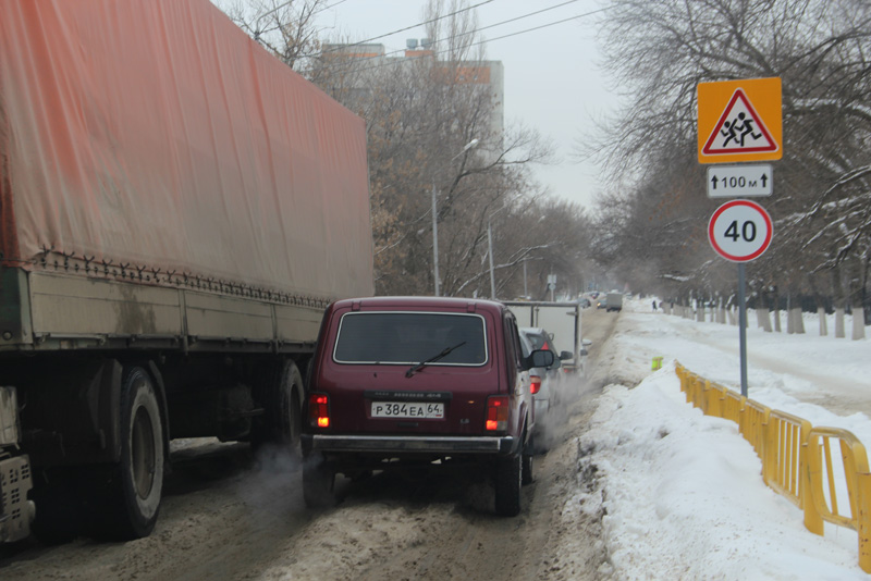 Инспекторская поездка сотрудников «Дорожного контроля» лишь подтвердила слова саратовца. Перед пересечением с улицей Танкистов, на обледеневшей дороге забуксовал большегруз, из-за чего на улице Артиллерийской образовался большой затор.