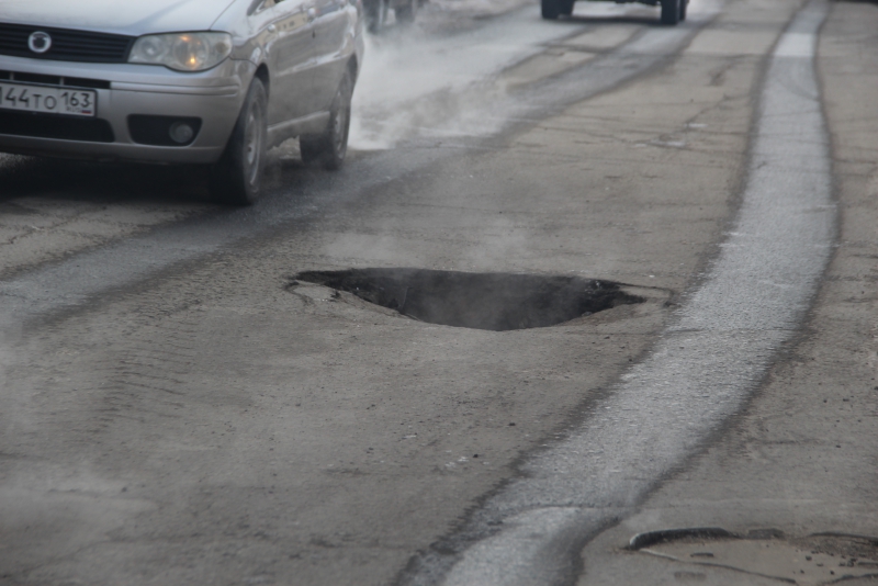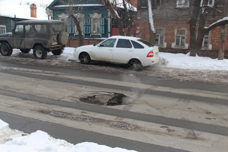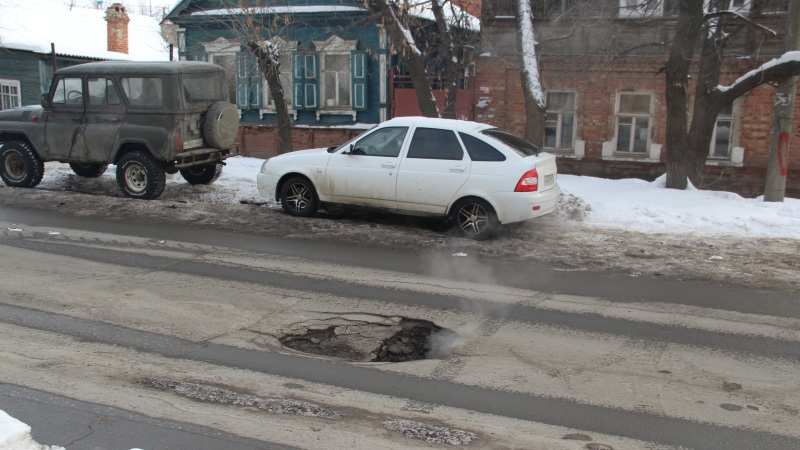 В центре Саратова на дороге провалился асфальт