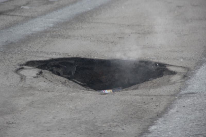 В настоящее время яма не огорожена и представляет реальную угрозу для автомобилистов.