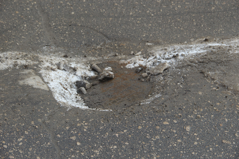 За прошедшее время вокруг смотровых колодцев асфальт, активно разрушаясь, превратился в глубокие ямы, часто занимающие всю ширину одной из полос для движения транспортных средств. Для объезда препятствий водителям часто приходится выезжать на встречную полосу, либо ехать через выбоины.