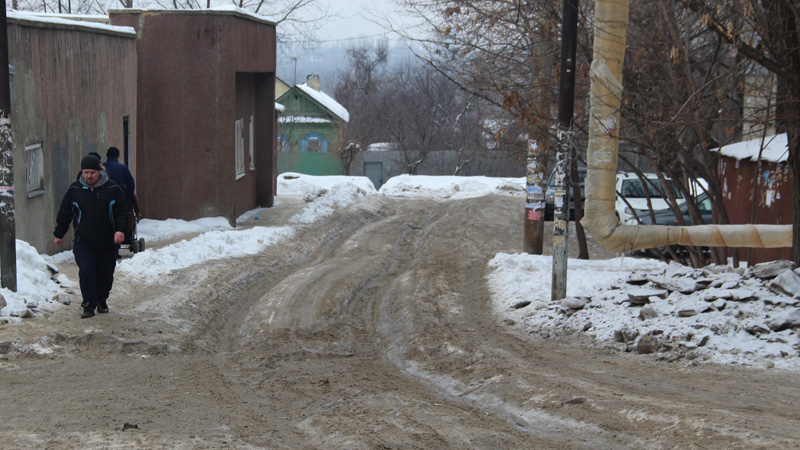Последовавший снегопад и наступившие морозы превратили дорогу в ледяную гору, которую ежедневно вынуждены штурмовать местные жители. Заезд со стороны улицы Безымянной осуществляется по глубокой ледяной колее, и если встречаются встречные автомобили, разъехаться они просто не могут, а часто идущая на подъем машина и вовсе застревает. Автомобили с низким клиренсом фактически скребут днищем по ледяным буграм, оставляя на них многочисленные царапины. Со стороны улицы Навашина проезд преграждает котлован на месте коммунальной аварии, вот уже скоро месяц, как его не устраняют, и водители вынуждены объезжать препятствие по тротуарам, рискуя соскользнуть в глубокую яму. Но если автовладельцы рискуют повредить свои транспортные средства, то пешеходам приходиться и вовсе несладко. Обледеневшая дорога и пешеходные зоны заставляют скользить и передвигаться приставным шагом, а пересечение глубокой ледяной колеи и вовсе становится тяжким испытанием, особенно для пенсионеров и родителей с малолетними детьми.