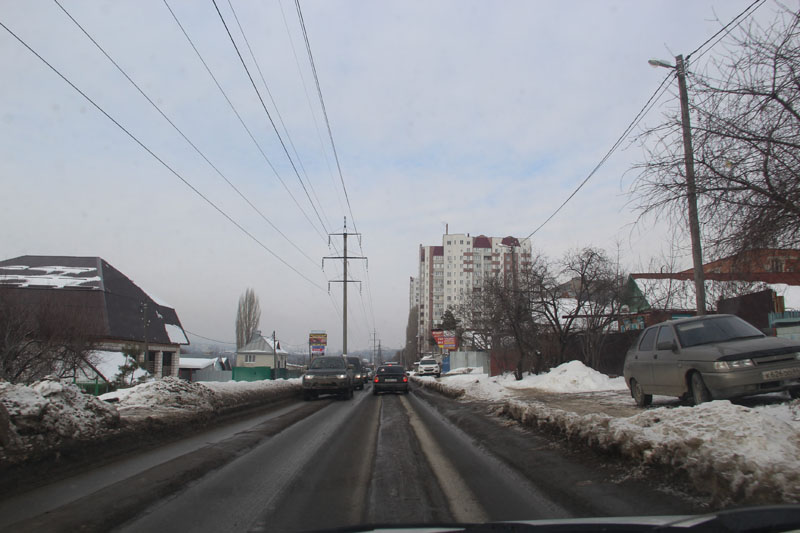 Небольшой участок с наледью на 1-м Магнитном проезде у дома №34 в Кировском районе Саратова приводит к образованию крупных заторов на этой дороге.