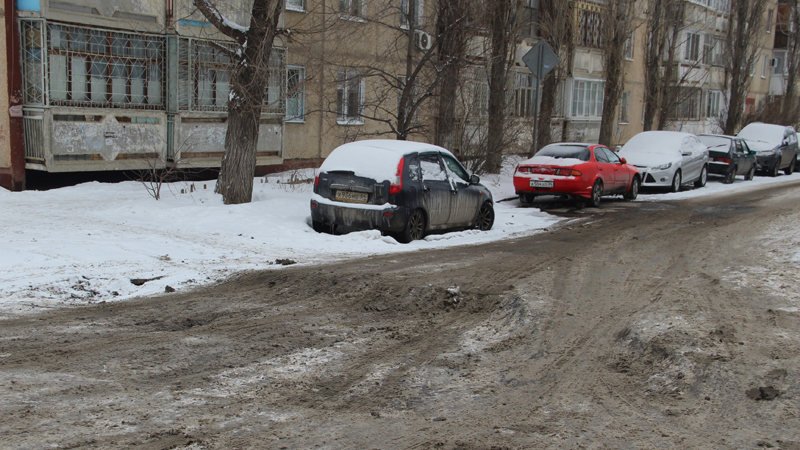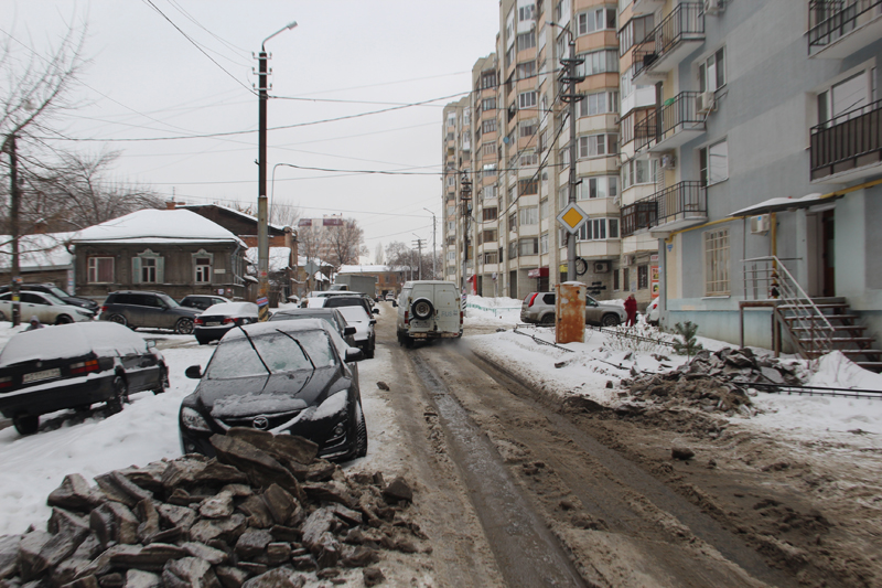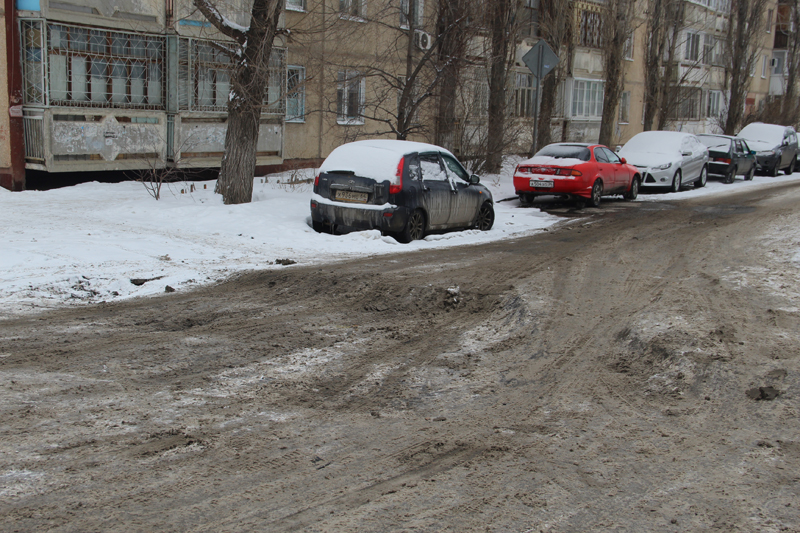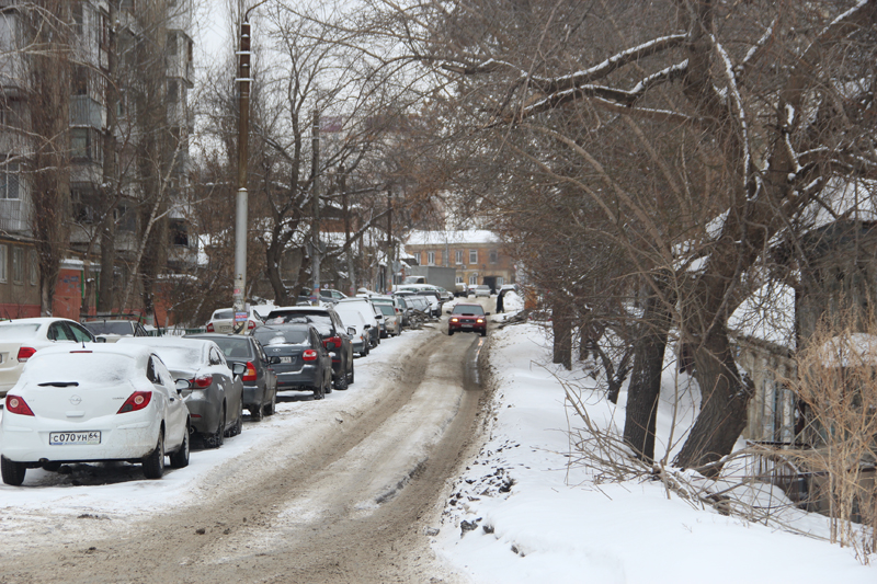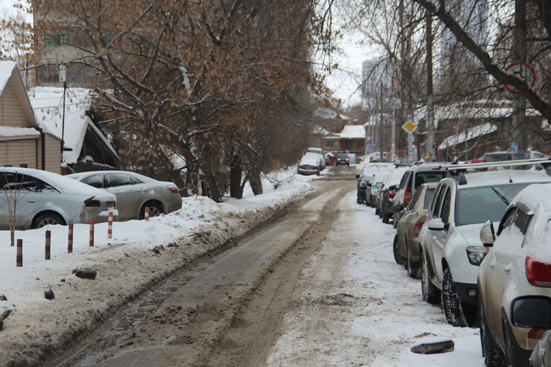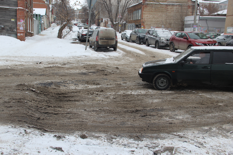 На остальном своем протяжении улица Кузнечная также не является безопасной для движения транспортных средств. В обоих направлениях проезд осуществляется по единственной ледяной колее, на которой наледь сколота только на заездах к дворовым территориям.