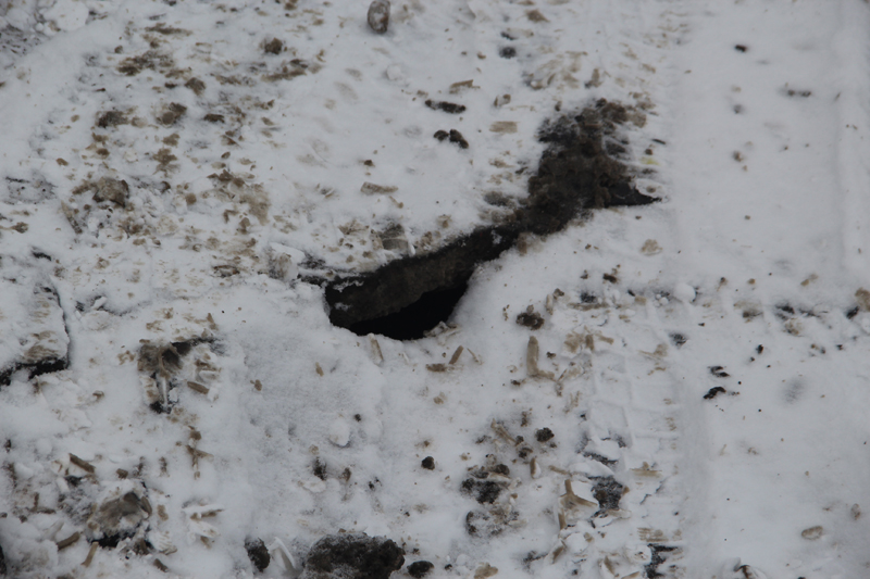 Резкий перепад высот на проезжей части заставляет водителей медленно преодолевать просадку, чтобы не повредить свои автомобили. Для многих автомобилистов яма, скрытая слоем снега и наледи, становится неприятным сюрпризом, и они вынуждены применять экстренное торможение, рискуя угодить в занос на неочищенной дороге. Для местных жителей просадка не становится сюрпризом, и они уже накатали новую дорогу в объезд препятствия через пешеходную зону.