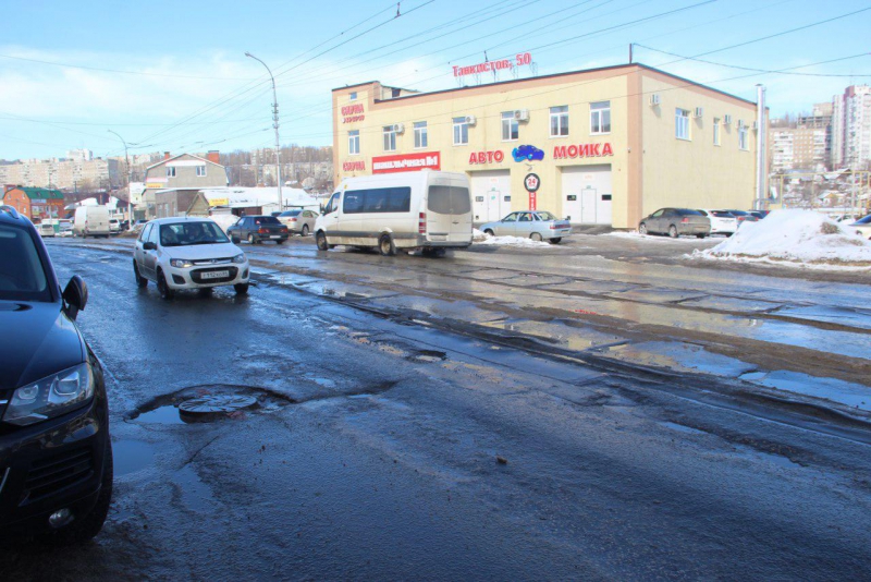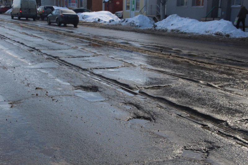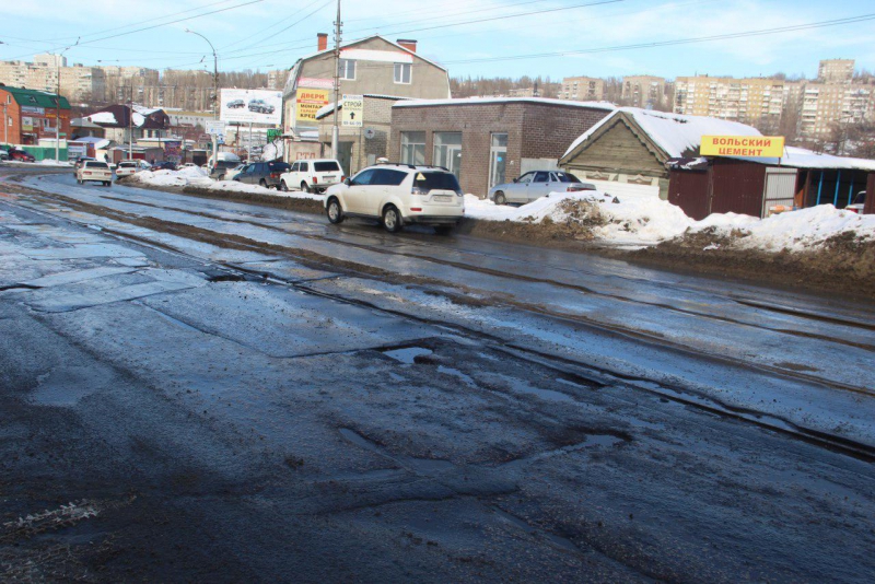Глубокие выбоины, выступающие трамвайные рельсы, просевшие смотровые колодцы и выпоры асфальтового покрытия делают движение по этой дороге небезопасным для саратовцев.