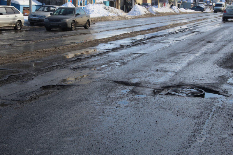 С приходом весны на улице Танкистов проступили глубокие ямы