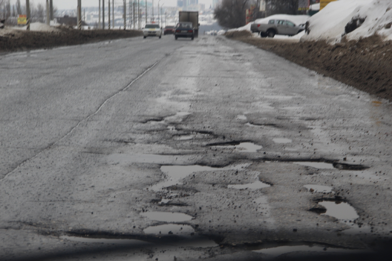 Разрушения коснулись всех полос для движения этой оживленной дороги, заставляя водителей активно маневрировать, чтобы объехать очередное препятствие. Многие из ям скрыты талыми водами, из-за чего становятся неприятным сюрпризом для автолюбителей, провоцируя их на необдуманный маневр.