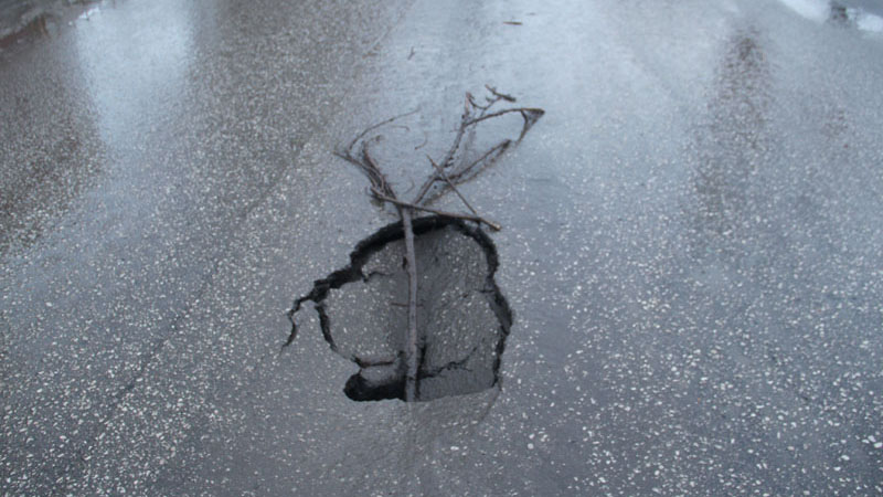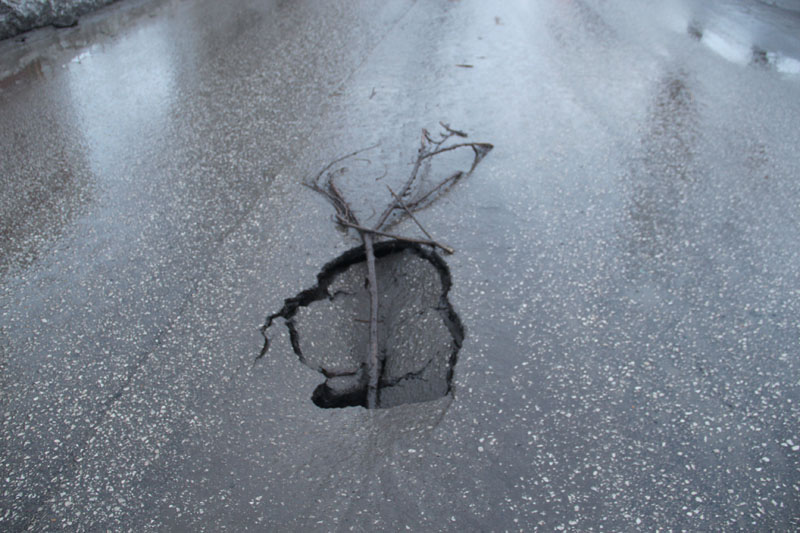 На дважды отремонтированной дороге появился провал