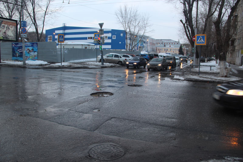 Участок оживленной улицы Степана Разина от Большой Казачей до Слонова в Саратове весьма ярко характеризует проблемы, связанные с дорожным ремонтом в Саратове.