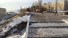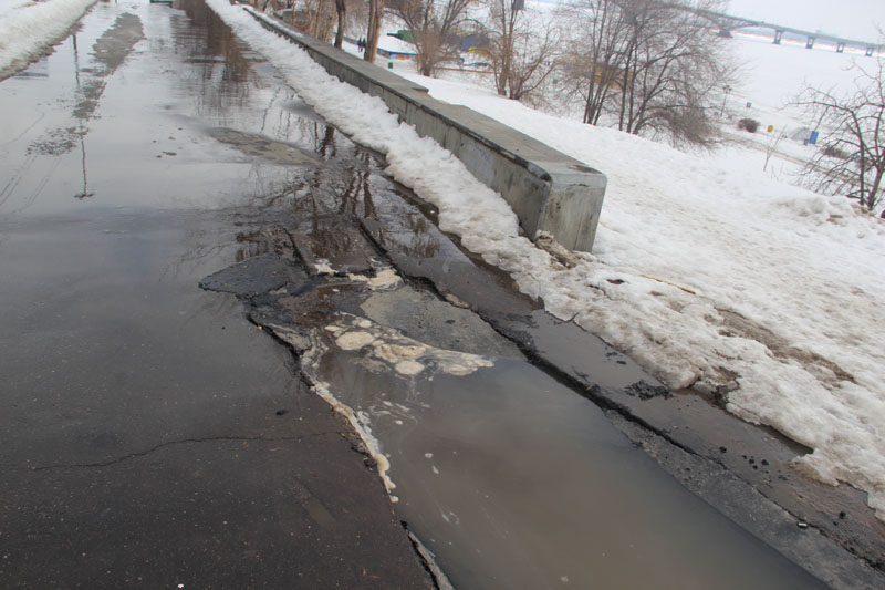 От образовывающегося провала во все стороны по асфальту протянулись глубокие трещины. В минувшем декабре к состоянию пешеходной зоны на набережной уже были претензии, наблюдалось сползание грунта недалеко от места нового провала.