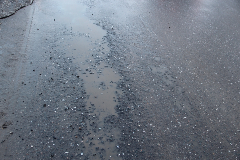 Активное вышелушивание асфальта с образованием выбоин происходит у остановки общественного транспорта «Центр Здоровье» и на пересечении с Брянским проездом. Данные дефекты будут усугубляться, превращаясь в глубокие ямы.
